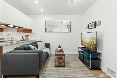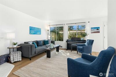 Live steps from everything downtown Kirkland has to offer in this light-filled, updated 2-bedroom townhome. Walk to waterfront parks, restaurants, shops, and cafes while enjoying the comfort of a quiet, residential setting. Recently refreshed throughout, this home features brand-new flooring, fresh interior paint, and a new water heater, making it truly move-in ready. The bright, open main level includes a convenient ½ bath, perfect for guests and everyday living. The spacious primary suite is a true retreat, offering a large bedroom, walk-in closet, and 3/4 bath. Just off the primary is a bright, sunny attached office, ideal for working from home or easily used as a nursery. The second bedroom is served by its own full bath, providing comfort and privacy. Outside, enjoy a cute, private backyard with space to relax, entertain, or grow your own vegetables—a rare bonus in such a prime, walkable location. Additional highlights include ample storage, a one-car garage, and an uncovered p