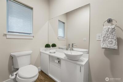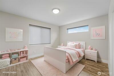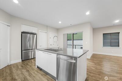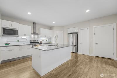 Outstanding opportunity on this 'better than new' 3 bedroom, 2 1/2 bath 2 story home in Kent's Rainier Park community. 2 car alley access garage. Spacious floorplan ideal for today's busy lifestyles. Modern and high-end finishes by Ichijo, an award-winning builder. Features include: air conditioning, tankless water heater, laminate flooring throughout, designer window coverings, LED Lighting, exclusive magnetic door stops, architectural interior doors w/quarter turn door levers, dual slide windows, and more. This home has white piano finish cabinets in kitchen w/Blum pull down shelves & Quartz countertops, walk-in pantry and center island/breakfast bar. Spacious primary bedroom with vaulted ceiling & walk-in closet. Spa-like primary bath includes double sinks, soaking tub, walk-in shower, bidet and tile floor. Bonus loft on 2nd floor is a great TV or entertainment room. Start and end your day with your beverage choice on the covered patio. Neighborhood park 1 block away. Mo
