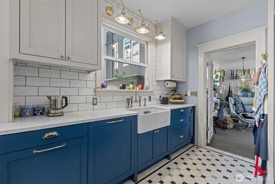 Set in one of Seattle’s most connected neighborhoods, this 1910 Green Lake Craftsman puts parks, dining, shopping, and commuter access all within easy reach. Green Lake, Wallingford, and Fremont are just moments away, offering the best of North Seattle living, from lakeside recreation to Wallingford’s beloved cafes, restaurants, and local shops, along with Fremont’s vibrant dining scene, markets, and eclectic neighborhood favorites. With I-5 nearby, access to downtown and beyond is quick and convenient. Original character shines through with built-ins, stained glass, oak floors, and tall ceilings, while bright interiors and a private patio make the home feel warm and inviting. The newly renovated kitchen is a standout, appointed with Miele appliances and a built-in Miele coffee system, and ductless mini splits bring added comfort. A large office and partially finished basement provide valuable flexibility, storage, and room to grow.