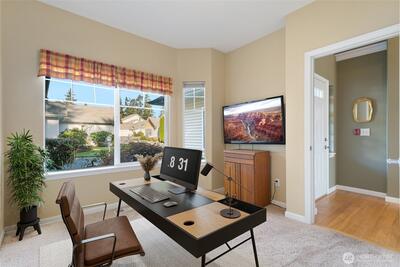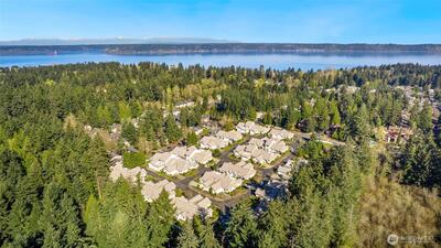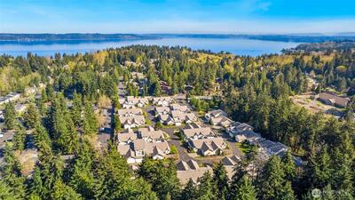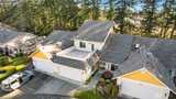 Welcome to one of the largest and most versatile floor plans in the sought-after Palisades at Dash Point—a gated, active 55+ community nestled among the trees of Federal Way. The impressive Great Room showcases vaulted ceilings, skylights, a cozy gas fireplace, and custom built-ins, creating a warm yet refined space filled with natural light. Step onto the private balcony and enjoy peaceful views of the surrounding wooded wetlands—an ideal setting for morning coffee or evening relaxation. Designed for effortless main-level living, the home features a spacious primary suite, laundry, and all essential living areas on the main floor—offering comfort and convenience without the need for stairs. The primary retreat includes a soaking tub and a large walk-in closet, providing a perfect place to unwind. Upstairs, a private junior suite with its own ensuite bath and an expansive rooftop deck above the garage offers an exceptional guest experience. An additional bedroom provides flexibil