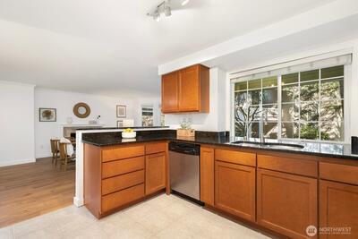 Enjoy your best summer yet! Just in time for the season, live minutes from Juanita Beach Park, scenic waterfront trails, and the lively shops and dining of Juanita Village. Inviting ground-level condo offers the perfect blend of comfort, convenience, & lifestyle in one of Kirkland’s most desirable communities. Thoughtfully updated with fresh paint & durable luxury vinyl plank flooring, the home welcomes you with a clean, modern feel. Spacious living room filled with natural light & centered around a cozy fireplace, creating a warm and relaxing atmosphere. Bright, open kitchen features slab granite countertops, stainless steel appliances, & a convenient eating bar that flows seamlessly into the dining area—ideal for both everyday living & casual entertaining. Easy access to the private patio, extending your living space outdoors to enjoy fresh air, morning coffee or evening relaxation. Both bedrooms are well-sized & versatile, with the 2nd bedroom perfect for guests, a home off