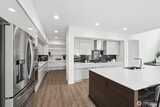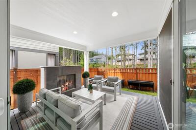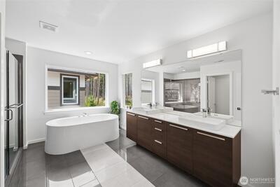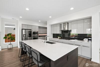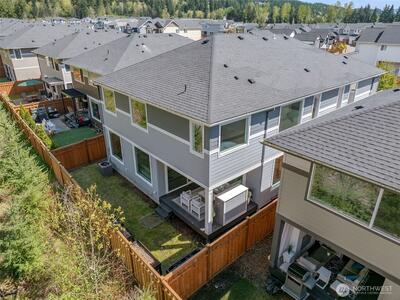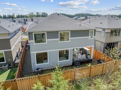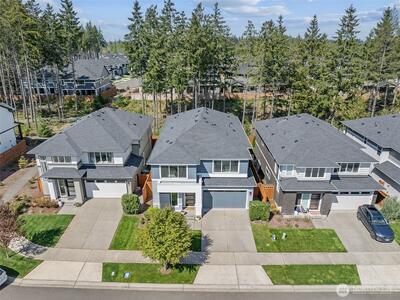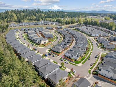 Modern luxury meets everyday comfort in this stunning MainVue resale in the highly sought-after Tehaleh community! Designed with a spectacular open-concept floorplan, this home offers generous space for both living and entertaining. The main floor features a private den/office with French door entry, perfect for remote work or quiet retreat, as well as an open den/ office/ flex room off the kitchen. Soaring ceilings and abundant natural light highlight the formal dining area, creating an inviting atmosphere. The sleek, contemporary kitchen is a true showstopper with white quartz countertops, grey cabinetry, stainless steel KitchenAid appliances, a massive center island, unique under-cabinet windows, and an expansive pantry complete with wet bar prep space. The spacious living room is anchored by a cozy gas fireplace, seamlessly flowing to the covered outdoor patio with its own fireplace—ideal for year-round entertaining. Upstairs, unwind in the oversized primary suite featuring a spa