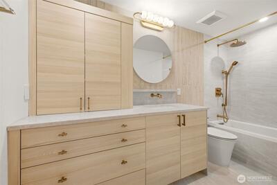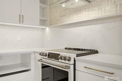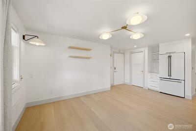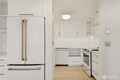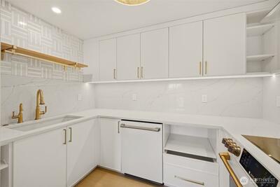 Beautifully remodeled Newcastle condo with a bright open layout and clean modern finishes, featuring a designer kitchen with Café appliances, custom cabinetry, Brizo fixtures, and a large walk-in pantry, along with new flooring throughout. Fully updated with new cabinetry, countertops, electrical and plumbing fixtures, fresh paint, doors, and millwork throughout. Cozy living area with fireplace opens to a private deck. Thoughtful details like Buster & Punch switches and contemporary lighting throughout. Includes LG Tower washer/dryer. Assigned one car garage parking and storage room. Well-maintained community with weekly hallway vacuum service and landscape maintenance. Convenient location near shopping, dining, and commuter routes. Fully remodeled in December 2024.