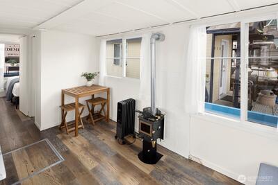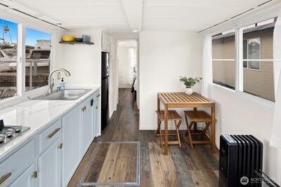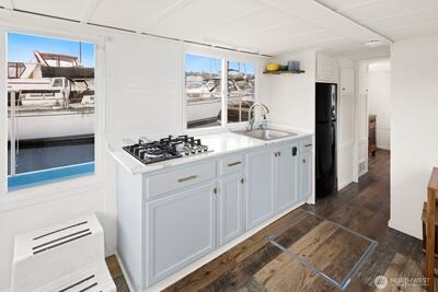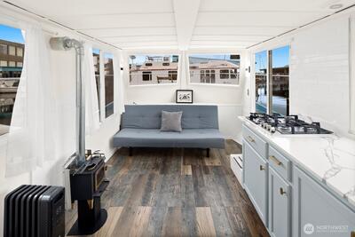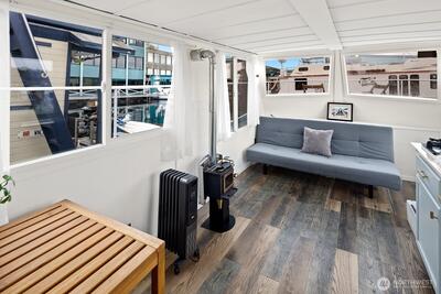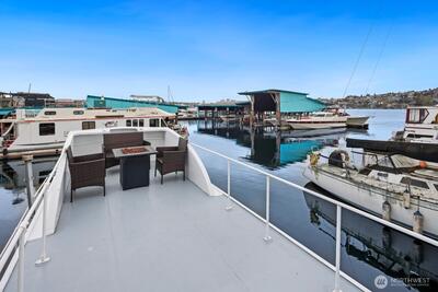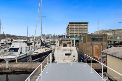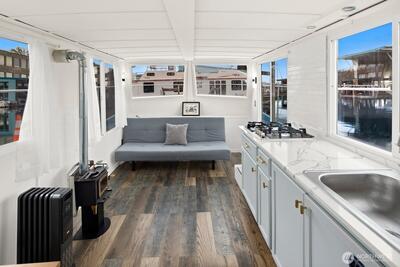 Every day will feel like a vacation in this recently remodeled houseboat! This classic Cruise-a-Home features new appliances, new counters, a new toilet, and fresh paint. In the winter, enjoy a cozy wood-burning stove. In the summer, enjoy your rooftop deck. Well-located gated marina with onshore bathrooms and a deli. Liveaboard moorage is $1,350 a month and includes electricity, water, and garbage. Off-street parking available for a modest RPZ permit fee. This houseboat has been surveyed. FOWR 977. No rentals allowed at this marina.