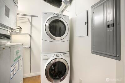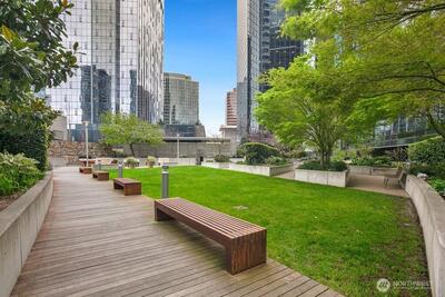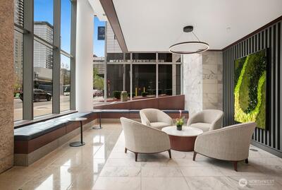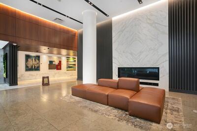 Experience refined eco-luxury in a premier downtown setting with sweeping southern exposure and captivating city, lake, and mountain views. This thoughtfully designed residence lives large with an open layout, custom niches ideal for artwork or a home office, and Elfa storage systems that keep everything beautifully organized. The kitchen is appointed with Sub-Zero, Viking, and Grohe fixtures, blending elevated style with everyday function. Natural light fills the living spaces, creating a warm and inviting atmosphere perfect for both entertaining and relaxing. Enjoy a full suite of amenities including a spa, fitness center, media room, hot tub, and a half-acre private park. A 24-hour concierge and secure garage provide ease and peace of mind. LEED Gold certification highlights a commitment to sustainability without compromising comfort. Located just blocks from Bellevue Square, Bellevue Park, Safeway, and Purple Café right downstairs, this home offers exceptional access to shopping,