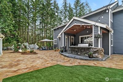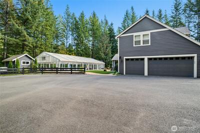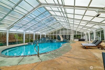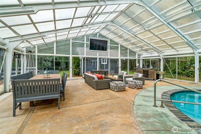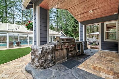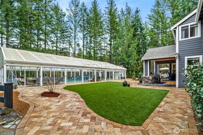Beyond a private gate, tucked among just ten homes and a canopy of mature evergreens, something rare begins—just five minutes from Maple Valley’s Four Corners. Not just a home—but a fully realized lifestyle compound, with more than $860,000 invested since 2021. A glass-enclosed pool pavilion with slide and hot tub. A 40x70 shop with solar panels powering most of the home. An outdoor Wolf kitchen beneath a cedar-plank ceiling. Space for RV guests w/50Amp & H20 hookups. Grounds that would take years to recreate. All of it already built. Already waiting. Inside, the home balances scale with intention. The family room gathers around a three-sided fireplace, creating a space that feels connected and central. The Wolf and Sub-Zero kitchen is the kind serious cooks pause for. The primary suite reflects a recent $115,000 renovation—freestanding soaking tub set before a floor-to-ceiling herringbone marble fireplace, dual rain heads, and warm wood cabinetry. A main-level bedroom or offic
