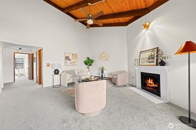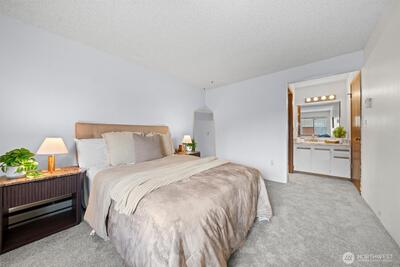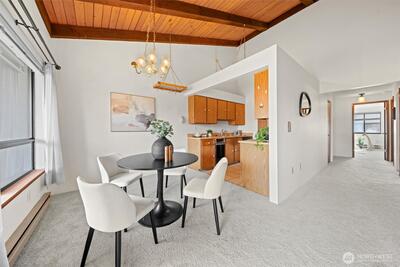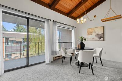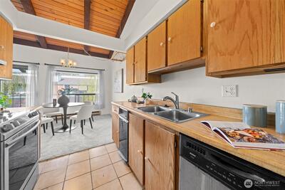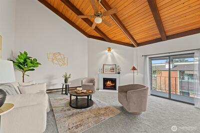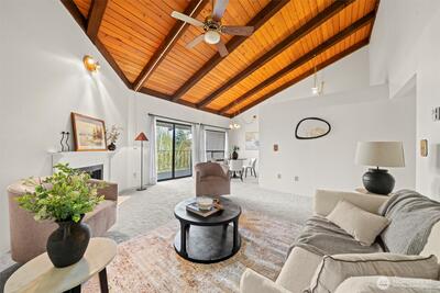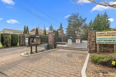 Charming West End top-floor condo, just a short walk to restaurants, shops and the waterfront — close to the Narrows Bridge. Bright open-concept living with vaulted ceilings, exposed beams, and a spacious living room that flows into the dining area and kitchen, then steps out to a balcony overlooking a peaceful courtyard. Primary bedroom includes an ensuite with a walk-in shower, plus a second bedroom and a second full bath. Recent updates: NEW carpet, fresh paint and updated appliances. In-unit laundry and extra storage included. Sunset Plaza is a premier gated community with an outdoor pool, tennis court and a clubhouse featuring a workout room, sauna, kitchen and pool table. Ideally located off 6th Avenue & Pearl, close to freeways, Point Defiance Park, Trader Joe’s, Whole Foods and more. Pets allowed. Full of character and charm, move-in-ready and rich with views, convenience, and resort-style amenities, this West End retreat is the unforgettable home you’ve been searching fo