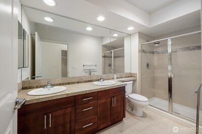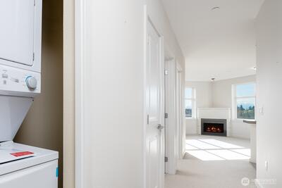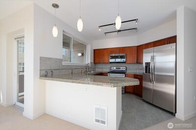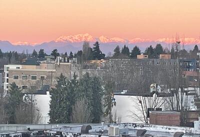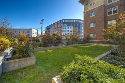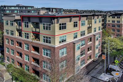 Picture yourself living where great restaurants, bakeries, coffee shops, library, waterfront and other favorite Ballard spots are right outside your door. This exceptional top-floor, end-unit condo offers views to the Olympic Mountains and gorgeous sunsets. Featuring two bedrooms, two bathrooms, and two parking spaces. It is move-in ready with new carpet and an in-unit washer and dryer. Open, light-filled floor plan helps you soak up plenty of sunshine. Step out onto the covered deck to relax and enjoy the scenery after a busy day. The community provides luxury amenities including concierge services, a gym, sauna, business room, owners lounge with kitchen, spacious patio with BBQ and spa, plus a small dog park. Canal Station is a well-managed, pet-friendly HOA and there is no rental cap. Assigned parking is located in a secure garage conveniently close to the elevator. All this, and just steps away from the year-round Ballard Farmers Market.