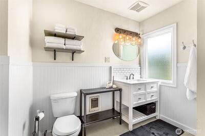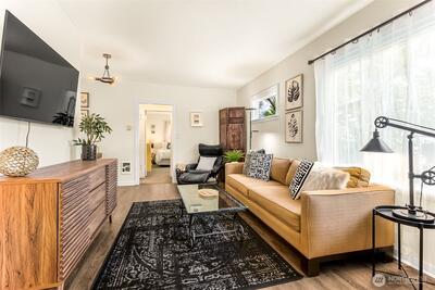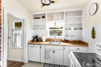Darling 1925 bungalow in the heart of Downtown Olympia. Former, profitable, AirBnb and Travel Nurse rental, consistently booked. Bright updated kitchen with Marmoleum floors, butcher block counters, open shelving, newer cabinets and appliances. Updated accessible bathroom meets code, Marmoleum floors, newer vanity. 2 bedrooms on main, 1 larger bedroom upstairs. Updated vinyl windows, vinyl plank flooring, light fixtures, plumbing, electrical, garage door. Gated courtyard has hot tub wire. 1200 SF basement/garage accessed from North side of home (enter from Legion). Parking on street and behind home. ALL furnishings may be included/negotiated for turn-key short or mid-term rental. With full price offer, seller will replace roof and install 2 head mini split ductless HVAC on main and upper floors. Seller may carry contract with 20% down, 2 year balloon, 10% interest, 30 yr am. Seller is a licensed broker in the State of WA. Double listed commercial.