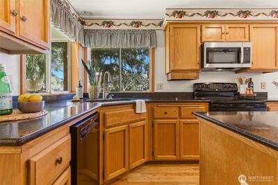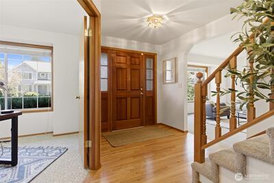 Tucked into one of Oakbrook’s most coveted, quiet enclaves (Oakbrook Meadows), this impeccably maintained home delivers the rare combination of turnkey ease, refined interiors, and an outdoor experience that truly sets it apart. Just minutes to Oakbrook GC, 10 min to the Puget Sound and shopping, parks and trails. This pristine home highlights magical natural light, beautiful oak hardwood floors, large skylight that opens and architectural details such as arched entryways, coffered ceiling tray and a gas fireplace w/classic brick surround— all work together to create an inviting, grounded living space. The heart of the home features solid oak kitchen cabinets, granite countertops, updated appliances, island for prep and a pantry - all overlooking a manicured backyard oasis. Enjoy a generously sized primary suite w/seating area and large organized walk-in closet. Relax in the luxury 5 piece ensuite w/heated floors, jetted soaking tub, granite CTs and multi-head shower experience.