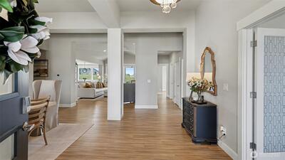 Located in the desirable Elk Run neighborhood, this stunning Brantley floor plan offers over 3,400 sq.ft. of refined living with thoughtful upgrades throughout. Designed for today’s lifestyle, this spacious rambler-style home features a luxurious main-level primary suite with dual walk-in closets and spa-inspired comfort. The elegant layout includes both formal and casual dining spaces and a private home office with French doors—perfect for working or studying from home. At the heart of the home, the chef’s kitchen impresses with stainless steel appliances, quartz countertops, and a dramatic waterfall quartz island, all flowing seamlessly into the vaulted great room anchored by a striking floor-to-ceiling tile fireplace. Upstairs, two expansive bonus rooms and a full bath provide exceptional flexibility for guests, media space, or hobbies. Step outside to enjoy the newly updated paver back patio with gas fireplace, covered to shield from the elements and enhanced by an electric p