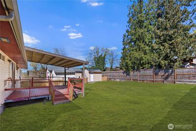 Tucked at the end of a quiet cul-de-sac, this inviting rambler offers the space and privacy you’ve been looking for. The fully fenced ¼-acre lot is perfect for gatherings, pets, or simply enjoying the outdoors. Inside, the open-concept living area flows into a bright kitchen and dining space, creating an easy, connected feel. Step outside to the large covered deck, ideal for year-round entertaining. With RV parking, a spacious storage shed, and quick access to shopping, dining, and transit just blocks away, this home blends comfort, convenience, and flexibility.