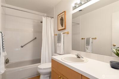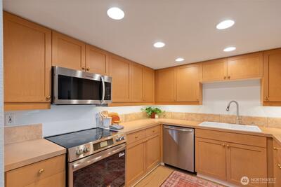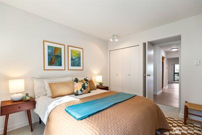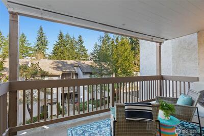 Nestled where the best of the Eastside converges, The Ridge Bellevue is highly sought after and it is easy to see why. This bright, move-in ready 2 bed / 2 bath has been done right with new hardwood floors, new wool carpet, fresh paint, all new stainless appliances, and a ductless mini-split for those warm summer days. The wood-burning fireplace takes care of the rest of the year. A private covered deck looks out over a canopy of Pacific Northwest firs, the kind of morning coffee spot that makes you forget you are minutes from 405, 520, Bellevue Square, and every major Eastside campus. Two parking spaces mean life stays easy with a secured garage and dedicated storage for your gear and a second reserved spot right outside your door for daily use. Community pool and cabana, no rental cap, top-rated Bellevue Schools. A rare opportunity for owner-occupancy and investment alike