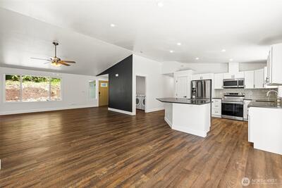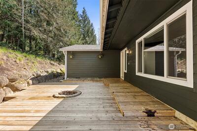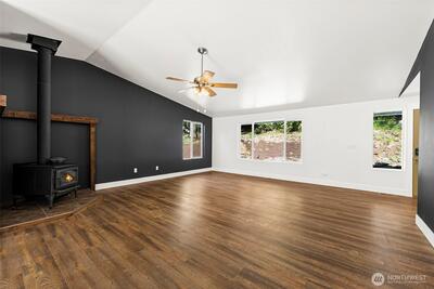 Welcome home to your own slice of Pacific Northwest paradise where 5 private wooded acres invites you to breathe deeper, live slower, and enjoy the beauty all around you. This fully updated 2,112 sq ft home offers an open layout filled with natural light, perfect for gathering, hosting, and everyday living. With 3 spacious bedrooms plus an office with a closet that can easily function as a 4th bedroom, and 2 full bathrooms, there is room for everyone feel at home. The primary suite is a peaceful retreat with sliding glass door to the deck and a beautifully remodeled en suite bath. The kitchen is designed function with generous prep space, abundant storage, and all appliances included. You will appreciate the many recent updates including brand new flooring, millwork, interior doors, fresh interior paint, a newer furnace and heat pump, and a brand new roof installed in 2025. Cozy up by the wood-burning stove and enjoy the comfort of home in every season. Step outside and explore your ow