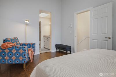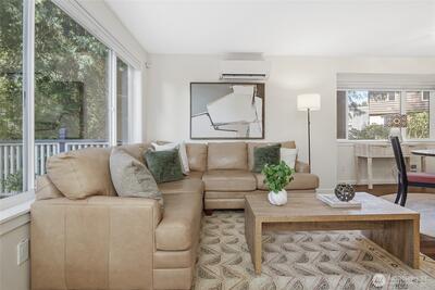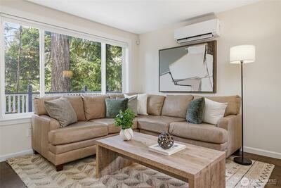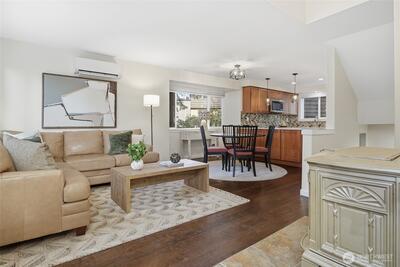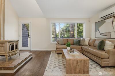 Experience quiet charm and tranquility right in the heart of Fauntleroy. This 2-bedroom, 1.75-bath townhome-style condominium backs to a lush greenbelt along Fauntleroy Creek, offering rare privacy and a serene, nature-filled setting. This unique end-unit home (Unit 6) is nestled among the trees and not visible from the street, creating a true escape that feels miles from the city, yet you are just minutes from everything West Seattle has to offer. Inside, you will find soaring vaulted ceilings, skylights, and an open main floor that flows seamlessly into the kitchen. The upper-level primary suite adds to the home’s airy feel, while two private decks invite you to relax and take in the tranquil surroundings. A free-standing wood stove adds warmth and charm, and the finished lower-level bonus/rec room offers flexible space for work, play, or guests. Enjoy modern conveniences like energy-efficient mini-splits and an EV charger, along with a large, shared garage featuring attic storage.