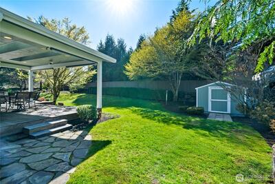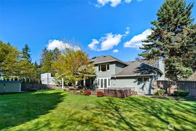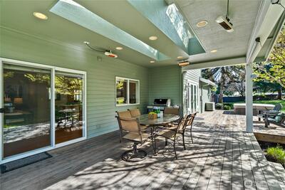 Nestled in Renton’s coveted Stonegate neighborhood, this serene half-acre retreat seamlessly blends space, elegance & comfort. Surrounded by mature landscaping & a fully fenced backyard, it’s your private oasis. Picture yourself unwinding year-round on the expansive ironwood deck with skylights, heaters & a luxurious saltwater hot tub. This 4-bedroom home boasts a versatile layout, anchored by a spacious first floor primary suite with French doors opening to the backyard deck, an attached spa-like bathroom & walk-in closet designed for ultimate convenience. Adjacent to the primary is a flex space, ideal for an office, nursery or cozy den. The main floor features a gas fireplace in the formal living room, an elegant dining room, and an open-concept kitchen with a walk-in pantry & eating nook flowing into the family room with soaring ceilings, a river rock gas fireplace & built-ins. Upstairs, a spacious bonus room offers endless possibilities, while the laundry room provides a