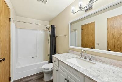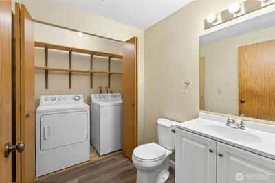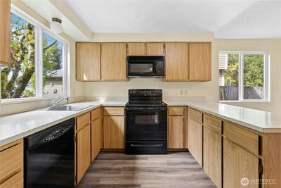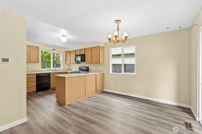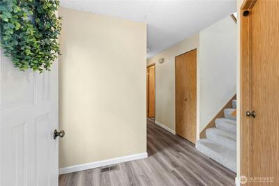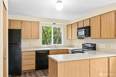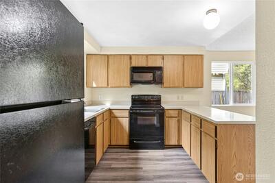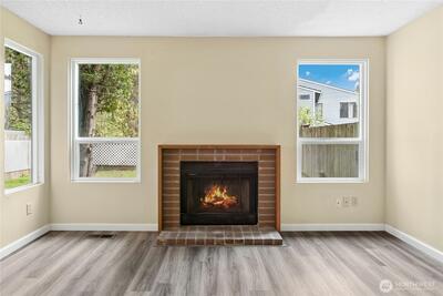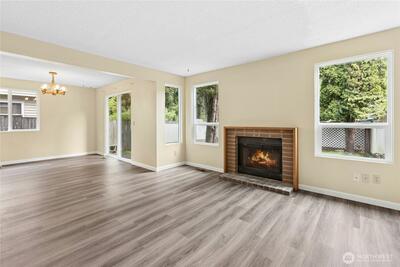 Great opportunity to build equity and get into the highly sought-after Lake Washington School District! This two-level "diamond in the rough" with attached garage offers solid potential and a functional layout ready for your vision. The main level includes a welcoming entry, updated half bath, and a large kitchen with pantry that opens to the adjacent dining area. The dining space flows into the living room, centered around a cozy natural fireplace with brick surround, and overlooks the flat, fenced, private backyard with patio—perfect for relaxing or entertaining. A conveniently located laundry area with full-size washer and dryer is also on the main level. Luxury vinyl tile flooring was installed throughout the first floor in 2024. Upstairs features two bedrooms plus a spacious primary suite with a huge reach-in closet and an updated full continental bath. A skylight over the staircase brings in abundant natural light to the upper level. Worth noting: the furnace was replaced in 2