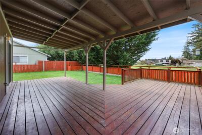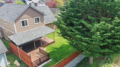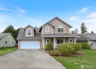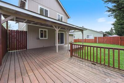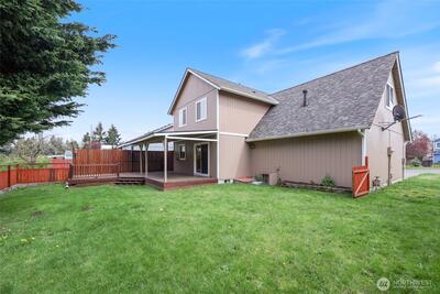 What a Gem! Come enjoy this well cared for home with "Rustic" back yard and huge deck. Close to everything Yelm has to offer, yet peaceful, quiet, and just out of the hustle! Plenty of parking in this location. Recent upgrades include New Roof - exterior paint all around, hard floors on the main level- Recent Hot water tank - Recent Refrigerator. All appliances stay with this home. Vaulted ceilings on the upper level open up the primary and large bedroom. Very functional kitchen with eating space all opened up to the sliding door out into the fully fenced rear yard and partially covered deck for year round entertaining. GREAT neighborhood for quite walks or enjoy the evenings year round sitting on the deck! This home is for YOU! This location is excellent with easy access to all that Yelm has to offer. Easy access to JBLM - Highway routes to Tacoma or Olympia. Bring your imagination and come visit your new abode. Thank you. Assumable VA $92,000.00 @ 3.875%