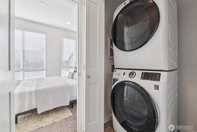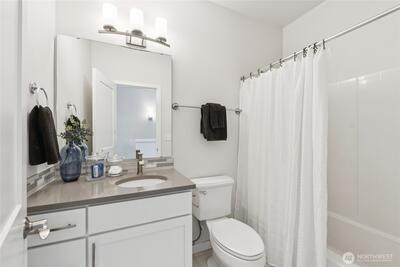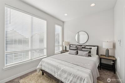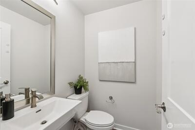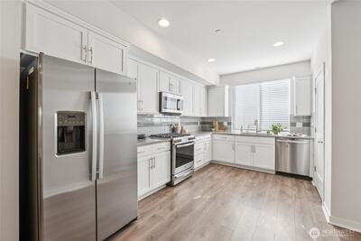 This wonderful light-filled luxury townhome is the first ever resale home in Northmark at Beardslee and has been so well cared for it feels brand new, without the new construction price. Perfectly situated near the UW Bothell campus with seamless access to I-405. The main level welcomes you with an expansive, sun-drenched floor plan featuring a large living room and a dining area designed for effortless entertaining. The expansive kitchen is a gourmet's delight, boasting sleek granite countertops, gorgeous stainless appliances, chef’s gas stove and a spacious "Costco-sized" pantry. Outdoor entertaining is easy with your fully-fenced patio. A thoughtfully placed powder room is tucked away in its own wing for maximum privacy, ensuring it stays well-separated from the kitchen area. Upstairs, you will find three bedrooms conveniently located on the same level, including a primary suite with an en-suite bathroom, 2 more bedrooms and an additional full guest bath. The lower level provides