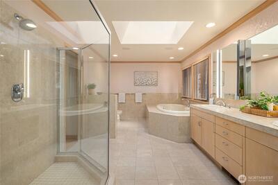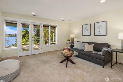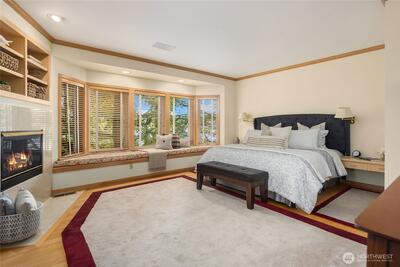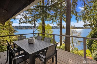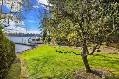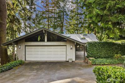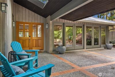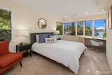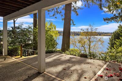 A true mid-century waterfront retreat with classic clean lines and timeless design in the heart of Enatai. Warm modern aesthetic accented throughout with vaulted cedar plank ceilings and walls of glass. Architecturally striking features include a dramatic stone fireplace and natural textures. Panoramic outlooks of the Olympic Mountains and the calm waters of Lake Washington from Mercer Island to North Seattle. The sunsets will take your breath away! This rare street-to-water lot offers 50 feet of sunny, low-bank waterfront, a grassy lawn dotted with three fruit trees, and a private dock with deep-water moorage. An opportunity to own a piece of Northwest modern design on the water’s edge.