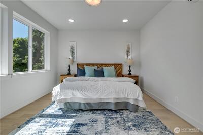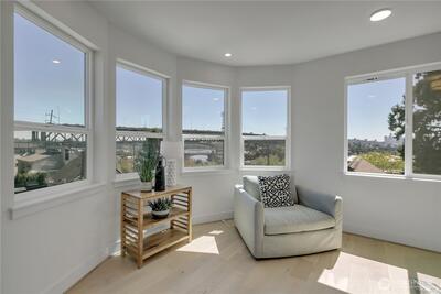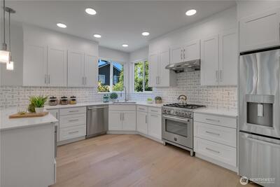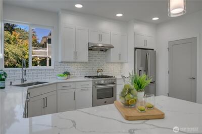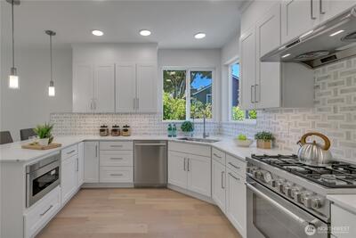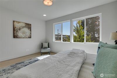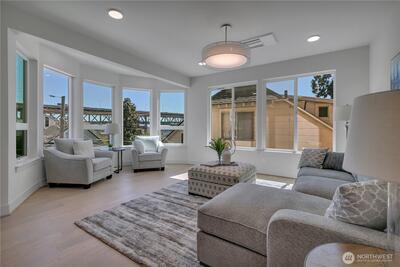 Dramatic New Price! New construction under $500/sf in Wallingford! Larger than most homes, this luxurious newly built 2-story Penthouse boasts 2,620 sf, 4Br/3.5Bth, and a massive rooftop deck with sweeping Lake Union, Ship Canal, and Cascade views. Light-filled interiors, high ceilings, hardwood floors, and an envious chef’s kitchen with 5-burner Bertazzoni gas range, quartz counters, SS undermount sink, eating bar, and walk-in pantry. Main floor guest bedroom and lavish 3/4 bath with heated floors and extra-large all glass walk-in shower. Primary suite features spa-like 7-piece bath (double sinks, walk-in glass enclosure multi-head rain shower, dreamy separate free standing soaking tub, & private water closet), heated floors, dual walk-in closets and serene vistas. Bow window design outlining views in living room and 2nd bedroom with double closets. Includes EV charger & tandem 2-car parking. Prime Wallingford location near University of Washington, Gas Works Park, Burke Gilman Trai
