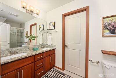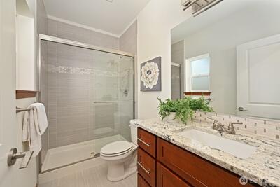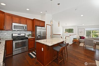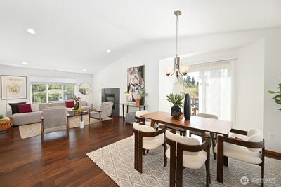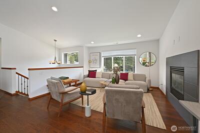 2016 built split-level with central AC, large 650 Sq Ft garage, and close to Sound Light Rail. Move-in ready Shoreline home with fresh paint and new carpet. The open main level has vaulted ceilings and a modern fireplace. Spacious open kitchen with gas range and prep island. The lower level with its high ceilings add a family room plus an extra bedroom and bath. Flexible floor plan for guests, a home office, or extended living. Walking distance to QFC, parks and top-rated schools. Smart thermostat, 240V EV outlet and a gas-plumbed deck for BBQ. A turnkey home that you will enjoy for years to come. Pre-inspection completed and available.