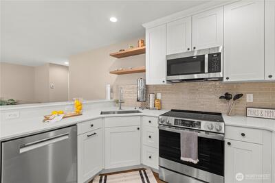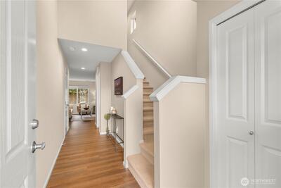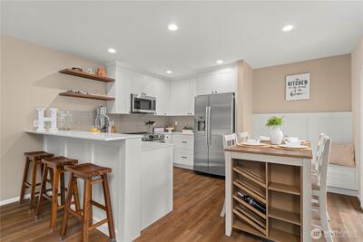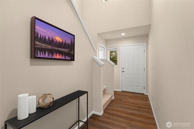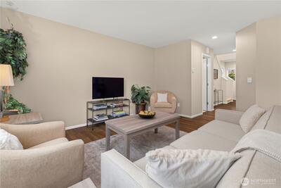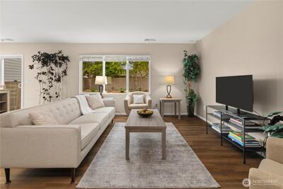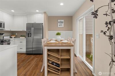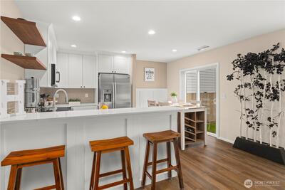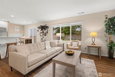 Welcome to this beautifully updated home in the quiet and desirable Woodridge neighborhood of Maple Valley. This well-maintained property truly checks all the boxes, starting with its spectacular curb appeal and meticulously manicured yard. Inside, you’ll find a remodeled kitchen with new appliances, fresh interior paint, new engineered hardwood flooring, and newer carpet—making this home truly move-in ready. The bright and functional layout is enhanced by vaulted ceilings, creating an open feel with abundant natural light throughout. The primary bedroom features a beautiful view of Mt. Rainier, adding a special touch to everyday living. Step outside to a generously sized backyard, perfect for relaxing or entertaining. Let's not forget to mention the amazing epoxy garage floor that shows the care this property has received! Located on a peaceful street with convenient access to schools, shopping, restaurants, trails, and more, this home offers the perfect balance of comfort and con