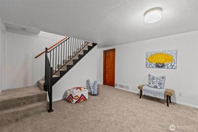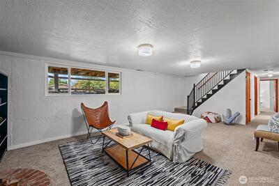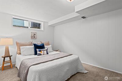 Stalwart and well-kept, this desirable midcentury home blends enduring character with a refreshed pragmatic interior. Solid, spacious, and grounded in classic design, this 5-bed/2.5 bath property exudes the straightforward function this era is loved for; while its North End locale offers the convenience, amenities, and neighborhood charm that makes this Narrows area consistently desirable. Poised on a roomy lot and framed by mature landscaping, the house and lot both appeal to today's modern buyers. Appreciate brand new picture windows in most rooms for amazing light and western sunsets, new carpet in primary bedroom and throughout the basement, fresh paint, added lighting, refreshed exterior porch, and a remedied sauna shower system in primary bathroom. Enjoy Spring blooming in front yard plus park-like privacy in back with full fencing, large patio, level grass, and a paved separate access to garage & back entry. Main floor living is comfortable in itself, yet the basement brings SO