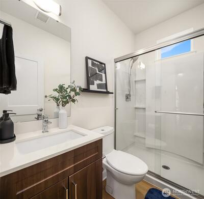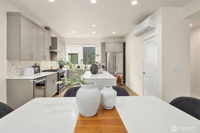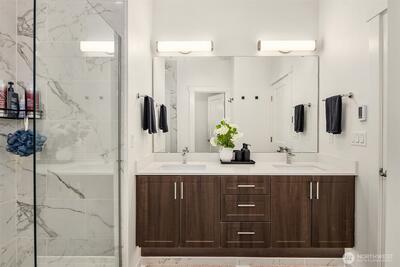 Welcome to this well-appointed 3-bedroom, 2.5-bath townhome in the heart of Downtown Bothell, offering just over 1500 sq ft of comfortable living space. The main level features an open-concept layout with a spacious living room, dining area, and a functional kitchen complete with granite countertops, stainless steel appliances, and ample cabinetry. Enjoy abundant natural light and a seamless flow ideal for everyday living and entertaining. Upstairs, the primary suite includes a walk-in closet with custom closet shelving and private en-suite bath, complemented by an additional bedroom and a full bath. Additional highlights include a three-quarter bathroom on the main level, in-unit laundry, and an attached spacious 2-car garage with Level 2 EV charger ready, backup generator switch panel and ample extra storage. Ideally located within the highly regarded Northshore School District, this home offers convenient access to nearby trails, including the Burke-Gilman Trail, as well as parks an
