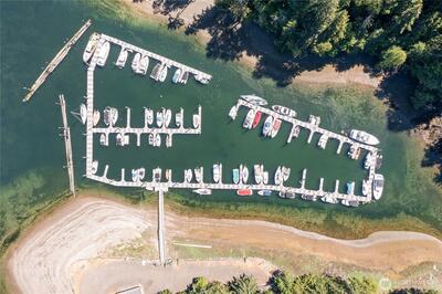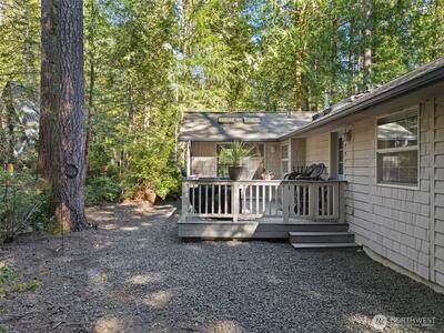 Light and bright with lots of windows and skylights, this well-maintained, 1-level cottage in the woods at Hartstene Pointe gated beach community is a perfect retreat for quiet get-aways and adventures. Two bedrooms, 1 bath, and office. Galley kitchen w/pantry opens to office, and door to private back deck. Dining room w/windows on three sides affords wooded views and slider to deck. Extra features are wood-lined ceilings and built-in window seats in living room and both bedrooms. Large storage shed/shop next to garage. Private location at end of driveway is well graveled. Just a short walk to clubhouse, seasonal pool/spa, fitness center, tennis/sport courts, community gardens and mailroom. Other HP amenities include: miles of private saltwater beaches and walking trails, picnic shelters, new marina, boat ramp, boat storage and more!