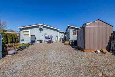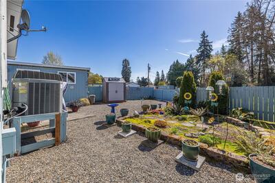 Beautifully maintained home in highly desirable Tacoma Country Estates; sits on private lot with no one behind you. This amazing 55+ community is minutes from the Freeway and all that downtown Tacoma and Puyallup have to offer. Do you RV? Country Estates has RV parking on premises for easy living. Large primary suite with 5pc bath and soaking tub. Open floor plan with soaring ceilings; great for gatherings and everyday living. The AC/Heat pump is soothing for hot summer days, and the pellet stove for those cold winter nights. *NEW* Luxury Vinyl plank flooring throughout living areas. Newer Paint and *ROOF* create the perfect turnkey experience to move in and relax. Amazing 18'x20' private Trex Deck is great for entertaining, not to mention the 7'x19' Shop area for projects and the additional 7'7' foot shed. With tons of parking you never feel cramped and there is plenty of parking for visitors. Hurry, this 3 bd 2bth 1483 sq. ft. home won't last long!