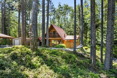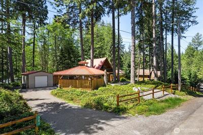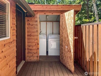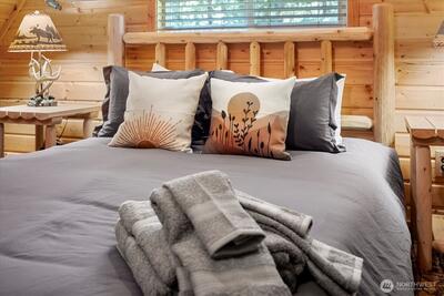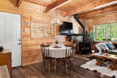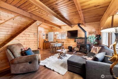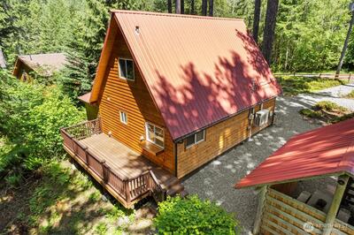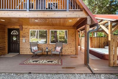 Meticulously maintained and thoughtfully improved, this fully furnished Mt. Rainier retreat spans two well-utilized lots totaling 0.36 acres, offering a rare combination of space, privacy, and functionality. Tucked into the foothills of Mt. Rainier, the property is ideal as a full-time residence, vacation home, or turnkey weekend getaway. The cabin is move-in ready with quality upgrades throughout, and the outdoor spaces are designed for year-round enjoyment, featuring two covered outdoor living areas, a covered fire pit lounge, hot tub, and detached garage—all thoughtfully integrated across the property. Rare two-lot ownership also offers added long-term flexibility, including potential future development opportunities. Community amenities include a lake, picnic area, clubhouse, and walking trails, with endless year-round outdoor recreation just moments away.