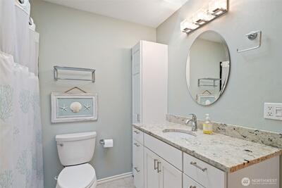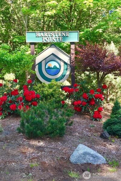 Well maintained and appointed cabin in the woods at Hartstene Pointe's quiet gated beach community. The perfect place to enjoy the peaceful serenity of our wooded areas, boating on South Puget Sound, or watching the wildlife. Light and bright w/lots of windows and skylights. Easy care LVP floors in most rooms. Kitchen w/granite counters, eating island, lots of storage and natural light next to dining area. Primary bedroom w/larage slider to partial wrap deck. Second bedroom/office has half bath/wall fireplace. Large bathroom with laundry. Living/dining area has large slider to new partial wrap deck/dog run. Hardiplank siding/metal roof. Small garage/shop/storage. Enjoy all HP amenities: pool, clubhouse,fitness center, tennis/sport courts, marina/ramp, picnic/firepit/areas, miles of walking trails & saltwater beaches.
