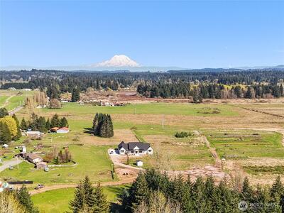 GORGEOUS BRAND NEW MODERN FARMHOUSE with MT RAINIER VIEWS ON 19+ ACRES...!!! Long Private Driveway onto a quiet, private and peaceful Estate-Like Setting!!! Luxury High End Finishes throughout! Expansive Great Room with Exposed Wood Beam Trussing, Stone Fireplace, Soaring Vaulted Ceilings, Dual Sliders to Spacious Covered Patio (Mt Rainier views!). Wide-Plank Hardwood flooring, Gourmet Kitchen w SS Appliances, Leather finished Granite Slabs, Farmhouse Porcelain Sink, Under Counter Lighting, HUGE Walk-In Pantry...! Office/Den w French Doors (privacy glazed), Primary Bedroom has Vaulted Ceilings, extra large En Suite with Dual Entry Stone Showers, Sculpted Soaker Tub, enormous Walk-In Closet ("California Closet") with Stacked Washer/Dryer. On-Demand Hot Water! 3 Bedrooms. Second Laundry Room w Folding Counters & Sink. 3-Car garage with Pulldown Stair Storage! Large Pump House for additional Storage! LANDSCAPING CREDIT: To Buyer $25,000!