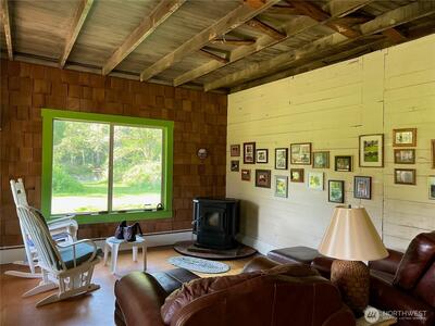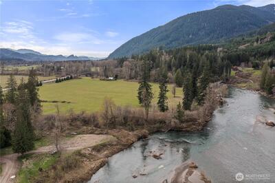 Escape to 30+ acres of rare riverfront paradise on three parcels with over 2,300 feet of frontage on the Cowlitz River, and your own private beach! On the east side, more than 1,500 feet of Garret Creek winds around the edge of the property, creating a truly unique retreat. Expansive territorial views, open skies, and plentiful wildlife define this one-of-a-kind setting. A historic ~1900 homestead offers rustic charm with original lapboard walls and hints of antique wallpaper. With updated electrical and a pellet stove, it’s best suited as a cozy “glamping” cabin or basecamp for your outdoor adventures. The property includes lush hayfields, mature timber, and a fenced garden with raised beds. Long-standing water rights from a gravity-fed spring (est. 1910) have been placed in trust; future residential building will require installation of a well. Power is available at a scenic camping and picnic area. Ideally located near Mount Rainier National Park and White Pass Ski Ar