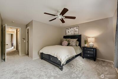 Gorgeous, clean end unit at Molasses Creek! Spacious 1,550 sq ft. with a great layout, brand new carpet, and a new stove. This is the perfect commuter home...only 20 mins from Bellevue and 30 mins from Seattle. Enjoy a sunny kitchen with breakfast bar which opens to the family room & walk-out patio access. Upstairs laundry area, full guest bath and big master suite with full bath with a double vanity & walk-in closet. Two car garage w/driveway. The community offers a clubhouse, outdoor pool, exercise room & spa. Close to trails, parks, & Maplewood golf course.