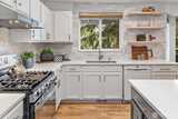 Fall in love with the home that has it all. Thoughtfully designed one-story on a sought-after private half acre lot at the end of a dead end street. Welcoming entry leads into a formal living room with vaulted ceilings & large windows drenching the space with natural light. Enjoy the architectural details such as arched doorways into the formal dining room off the kitchen. Host small & large gatherings effortlessly in this chef’s kitchen complete with crisp white cabinetry, stainless steel appliances, quartz countertops, stylish tile backsplash, modern wood open shelving, a skylight, & a large center island. An additional eating space flows into the living room with a cozy propane fireplace & access to the upper level deck. The primary suite features a walk-in closet, private access to the deck to enjoy a beverage as the sun rises, & a spa inspired 5 piece en-suite. There are two additional bedrooms & a full bath with a shower/tub combo. A walk in crawl space plus desirable oversize