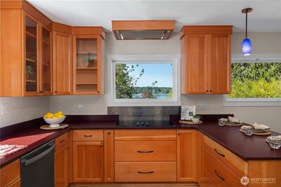Set on 1.30 private acres overlooking Totten Inlet, this peaceful waterfront retreat blends timeless charm with a full-scale, high-quality remodel. Thoughtfully redesigned, the home offers natural light and expansive views of the water. The beautifully updated kitchen features Paperstone countertops, custom cabinetry, stainless accents, and a layout intentionally designed to preserve the stunning inlet views. Throughout the home, you’ll find new energy-efficient windows, cedar siding, and hardwood flooring that add warmth and character. The bathrooms have been elevated with luxury tile, premium fixtures, skylights, and a spa-like soaking tub, creating a relaxing retreat after a day on the water. Step outside and experience the true magic of this property—your own private beach with access for kayaking and waterfront enjoyment. The grounds are a gardener’s dream, featuring mature fruit trees, lush enclosed garden beds, and an expansive deck overlooking both the gardens and the bay