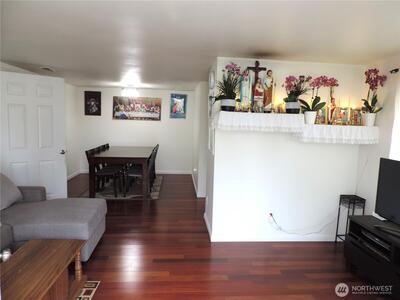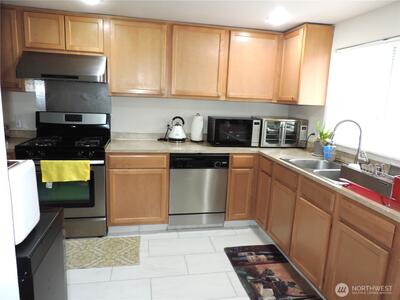 Beautifully maintained rambler in a convenient White Center location. This spacious home offers 4 bedrooms and 2.5 baths on a large lot featuring fruit trees and RV parking. Enjoy an attached 1-car garage, a dedicated utility room, and stainless steel appliances that stay with the home. The main level features gleaming hardwood and tile flooring throughout the living areas, kitchen, and bathrooms. The primary bedroom includes an en-suite bath and French doors, and all bedrooms are generously sized. Situated just minutes from local restaurants, shops, and major highways, this property offers excellent flexibility—ideal as a primary residence, investment property, or value-add opportunity.