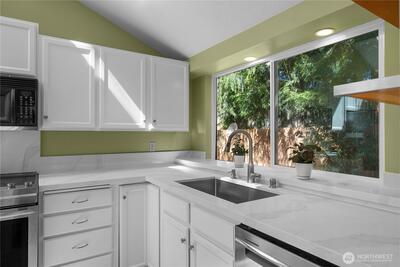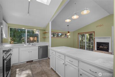 Tucked into a peaceful cul-de-sac in desirable SE Olympia, this inviting 3-bedroom, 2-bath home offers comfort, character, and a setting that feels wonderfully private while still being close to everything. Located in a sought-after neighborhood near schools, parks, shopping, restaurants, and easy freeway access, this home combines convenience with a tucked-away feel. Inside, vaulted ceilings, oversized windows, and skylights fill the home with natural light, while cork and tile flooring add warmth and style. The living area centers around a cozy gas fireplace, creating a welcoming space to gather. The kitchen has been thoughtfully updated with new counters, new sink, freshly painted cabinetry, stainless steel appliances, and a cheerful eating area for everyday living. The spacious primary suite is a true retreat, featuring French doors, a walk-in closet with built-ins, and an updated 5-piece bath with a soaking tub for a spa-like feel. The 2nd and 3rd BRs are large and the New Hall ba