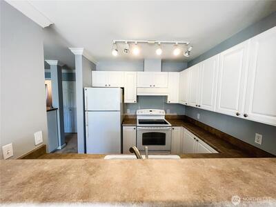 Top corner unit at the Latitude Condominiums in Federal Way. This beautifully maintained, 3 bed/ 1.75ba home features open concept floor-plan, balcony that overlooks the greenbelt, spacious rooms and primary suite. Garage #134. Amenities include: clubhouse with fitness rm; hot tub; sauna; heated pool &more. Great location near shopping, schools, bike trails, transit, restaurants, I-5 & Hway 18. HOA incl water, sewer & garbage plus common areas & maintenance.