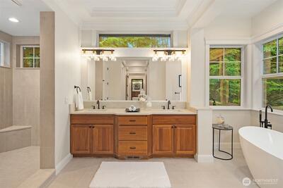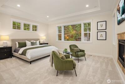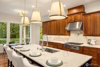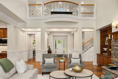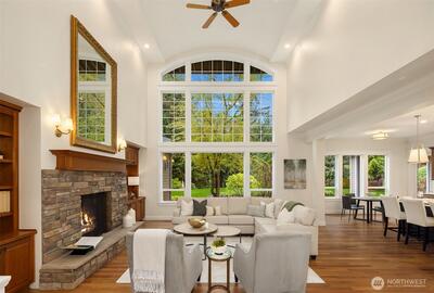 Discover refined Northwest living in Redmond’s desirable Union Hill, where timeless craftsmanship meets modern luxury on a generous acreage lot in the sought-after Lake Washington School District. A grand two-story foyer with statement chandelier creates a stunning first impression, opening to an expansive great room with soaring ceilings, fireplace centerpiece & walls of windows filling the space with natural light. The chef’s kitchen is designed for everyday living & elevated entertaining, featuring cherry cabinetry, Solitaj brushed quartz counters, Wolf rangetop and double ovens, Sub-Zero fridge, new Thermador dishwasher, and a new microwave, plus a butler’s pantry connecting seamlessly to the formal dining room. A versatile front room offers ideal space for office, music, or additional living. The main-level primary suite serves as a private retreat, complete with a fully remodeled, spa-inspired bath featuring a freestanding soaking tub, a walk-in shower, and heated floors. U