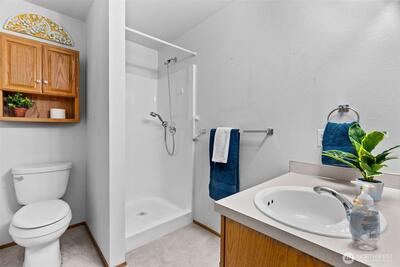 This well-maintained craftsman style, single-owner rambler is nestled in a charming subdivision within the highly sought-after Olympia School District. Perfect for the first time home buyer or the investor! Tucked at the end of a cul-de-sac, this 2-bedroom, 1¾-bath home offers added privacy and a peaceful setting. Step into the vaulted living room filled with abundant natural light. The spacious dining area—complete with a pass-through to the kitchen—is perfect for entertaining. The kitchen features an electric range, microwave, dishwasher, dual sink with a window overlooking the backyard, stainless steel refrigerator, and a convenient pantry. The second bedroom includes a generous three-door closet, while the guest bath offers a walk-in shower. A washer and dryer are neatly located in a hallway closet. The primary bedroom is comfortably sized with an en-suite bath featuring a tub/shower combo, skylights for extra light, and a large wraparound closet providing ample storage. Add