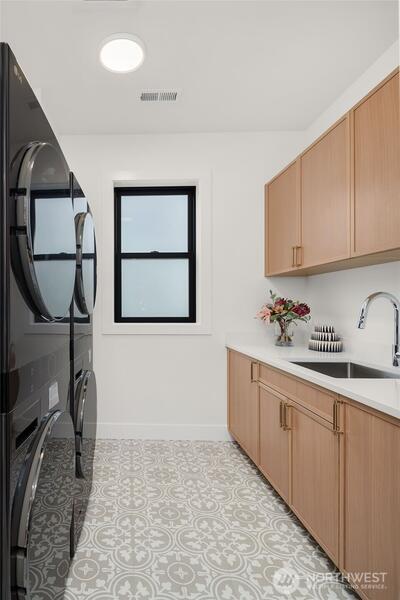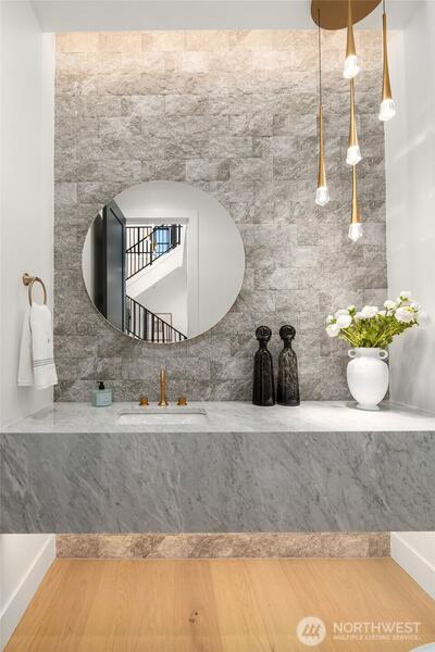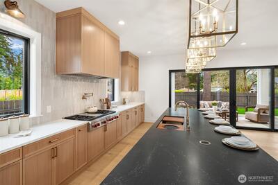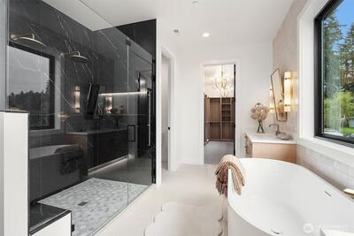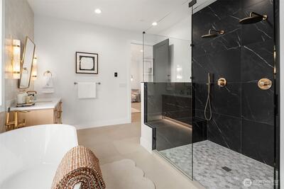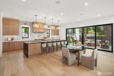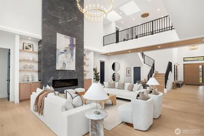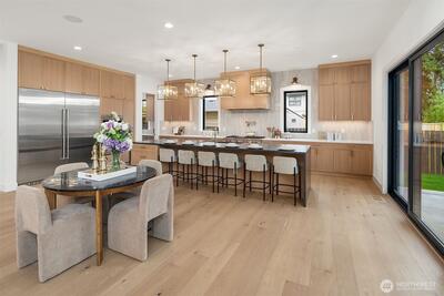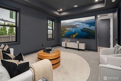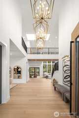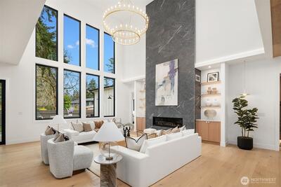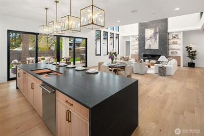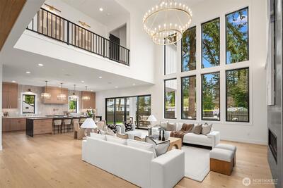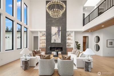 Discover a stunning new construction by CB Custom Homes in the highly sought-after Eastgate neighborhood of Bellevue. This exceptional residence showcases luxurious finishes and a masterful use of premium materials throughout. Designed to impress, the home features a spectacular grand entry, highlighted by an impressive pivot front door, and expansive living spaces tailored for both comfort and entertaining. The main floor includes a private guest suite, a dedicated den, and a state-of-the-art theater room complete with projector and built-in 5.1 surround sound. Soaring 10-foot ceilings on both the main and upper levels enhance the home’s open and airy feel. At the heart of the home, the magnificent chef’s kitchen is equipped with top-of-the-line appliances, including a Sub-Zero refrigerator and a 48-inch Wolf range. A fully appointed Butler’s kitchen with Bosch appliances adds both convenience and elegance. The dramatic family room is flooded with natural light from a wall of wi