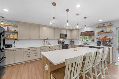 Beautifully refreshed 4 bed, 2.5 bath home offering over 2,500 sq ft of spacious living. Enjoy a huge complete kitchen remodel offering an oversized island with quartz counters - room for eating & entertaining, facing out toward the main living area for seamless connection. New interior paint, and a large open-concept floor plan perfect for everyday living. Expansive dining area, large landing pad at the top of the stairs. Primary suite suited for any size furniture + ensuite. Updated landscaping enhances curb appeal and outdoor enjoyment. Move-in ready with thoughtful updates throughout!