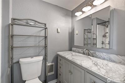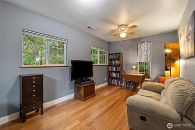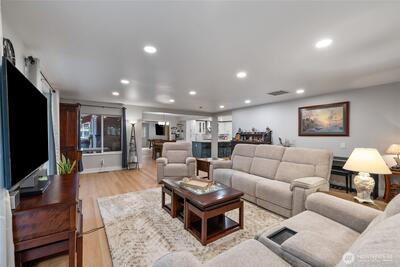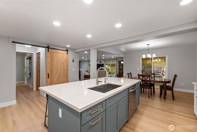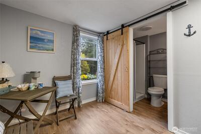 This beautiful Olympia home has everything you could want and more. 1.7+ acres on a quiet, dead-end street allows you to enjoy the tranquility of the country while still enjoying being close to amenities and having an easy commute. The kitchen has just had a gorgeous remodel fit for a magazine: quartz countertops, new appliances, modern microwave drawer, smart gas stove and much more. Home offers optional primary bedroom/bonus room with full bath on main floor, while upstairs, you'll find a primary bedroom with an additional 2 bedrooms – that’s TWO bedrooms fit to be a primary! Upstairs primary bedroom is HUGE and offers a gas fireplace, 2 closets, 5-piece bath, private balcony to enjoy quiet evenings and large bonus space for a nursery, library, office, gym, etc. Above the 22x26 detached heated shop is a 594 square foot STUDIO with Murphy bed, tankless water heater and 3/4 bath perfect for guests or potentially additional income. This home has been meticulously cared for and has r