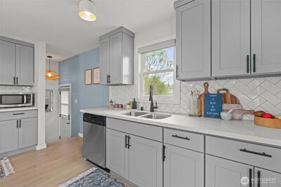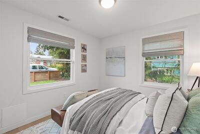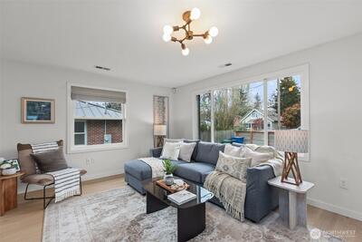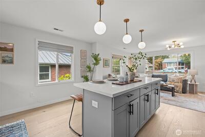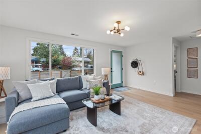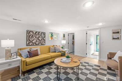 Welcome to your move in ready, updated home that is walking distance to Seward Park! New engineered hardwood flooring throughout, new roof, EV charger, designer bathrooms and California closets. Entry walks into an open floor plan in the kitchen for entertaining. Newer electrical, plumbing, kitchen, HVAC. Daylight basement offers a large family room, two bedrooms, full bath and laundry room with exit to a fenced backyard and alleyway. This home is right in the heart of Hillman City, Seward Park and Columbia City. Experience walkability, community and convenience with this turnkey home. Pre-inspected