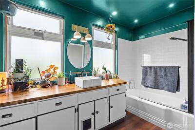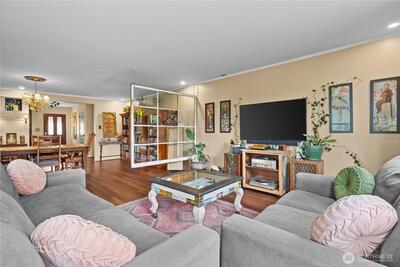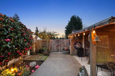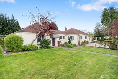 Tucked away in a peaceful and desirable part of downtown Puyallup, this charming rambler offers a rare blend of privacy, character, and usable space on a beautifully curated corner lot. Surrounded by mature landscaping, vibrant plantings, an abundance of blueberry plants, and rich Puyallup Valley soil, the property feels like a private retreat where birds fill the yard and every outdoor space invites you to slow down and enjoy. Inside, the home is filled with warmth and personality, featuring large living room windows that frame stunning magnolia trees and bring in abundant natural light. The open main living area, wide hallways, and spacious primary bedroom create an airy, comfortable feel, while the unique layout offers distinct living spaces that flow effortlessly together, ideal for both everyday living and hosting. A second kitchen adds flexibility and enhances the home’s versatility. Thoughtfully updated with a remodeled kitchen, refreshed bathrooms, updated flooring, insulatio