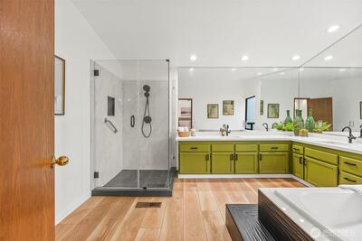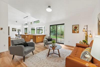 Fresh, efficient, and beautifully updated—This Maple Valley rambler delivers the updates buyers are looking for, with the lifestyle they want. The open, light-filled layout centers around a large, open kitchen that feels bright and welcoming. Nearly every major system has been upgraded in recent years, including flooring, interior and exterior paint, furnace, and water heater. Green features shine with solar panels, EV charging, and a durable metal roof. The spacious attached garage offers room for parking, storage, and shop space, and the deck composite creates the perfect place to relax while overlooking mature landscaping. Retreat to the primary suite with dual closets, private deck access, and an updated ensuite featuring a soaking tub and walk-in shower. A rare blend of comfort, function, and thoughtful upgrades—Come see what makes this property stand out.