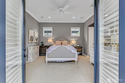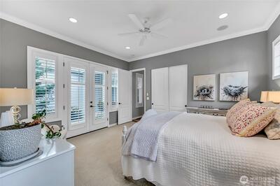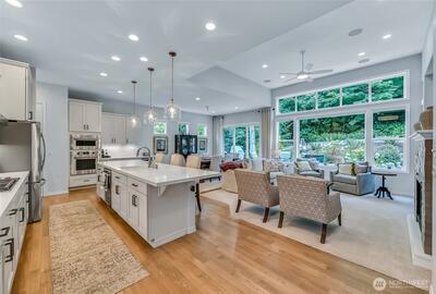 Experience refined living in this beautifully renovated residence, where exceptional craftsmanship and thoughtful design enhance every room and delivers an elegant, effortlessly comfortable atmosphere. Remodeled in 2022, the chef’s kitchen serves as the home’s centerpiece, featuring a large island, premium finishes, and abundant storage. Open to the great room, it’s an ideal setting for cooking, gathering, and entertaining. The luxurious primary suite impresses with customized, dual walk-in closets and a remodeled, spa-inspired bath, complete with a stand-alone soaking tub perfect for unwinding at day’s end. The guest retreat has a fully remodeled en-suite with a low-barrier shower. Striking office with dual workstations, storage and glass fronted display cabinets to the ceiling. Every room has been beautifully renewed to reflect the home’s cohesive, modern aesthetic. Outside, enjoy the relaxing sound of the water feature and vibrant gardens that lead out to the greenspace. W